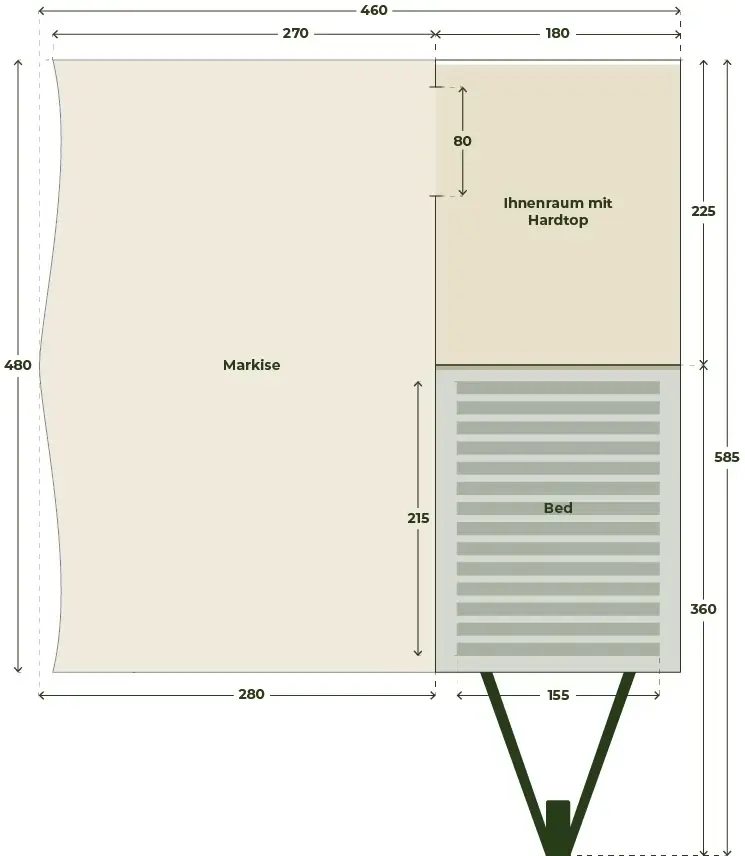 | Masse Vorzelt | 480 x 280 cm |